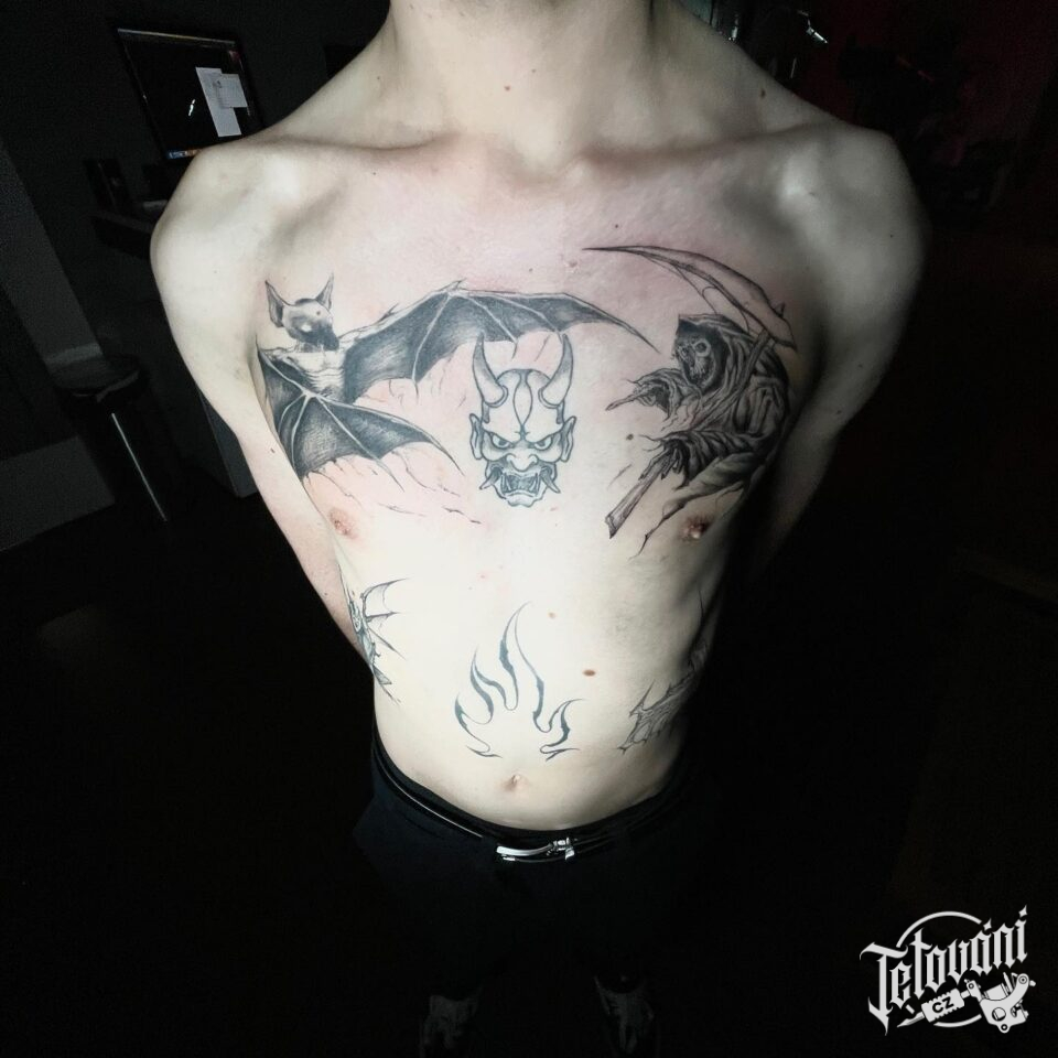 Tetování kostlivec, smrt na hrudi