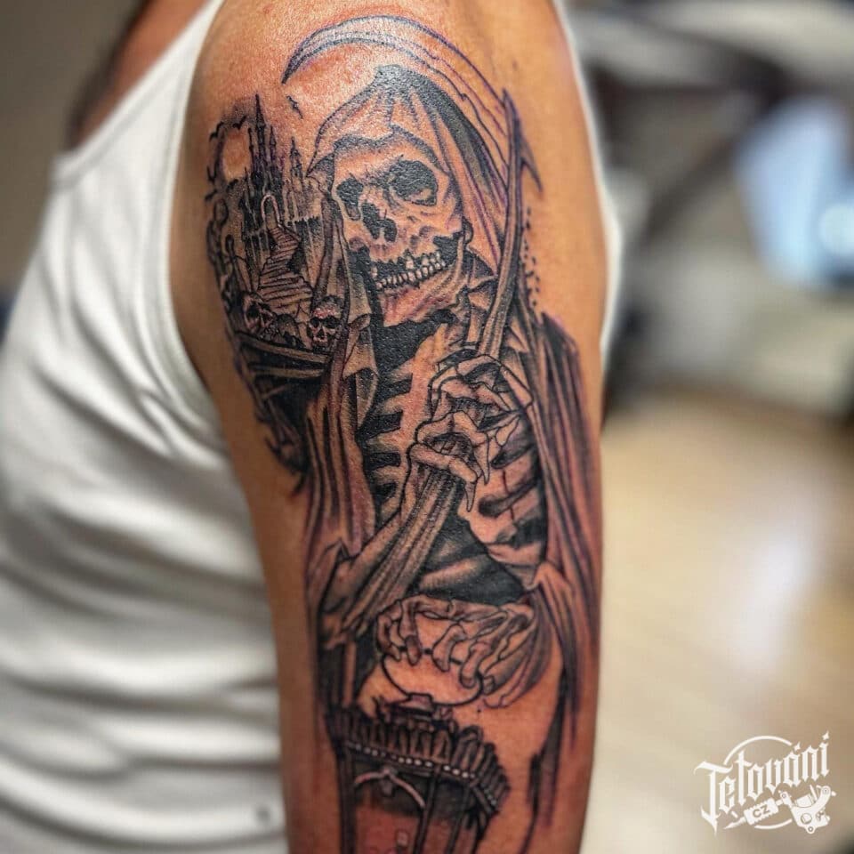 Tetování kostlivec, smrt na rameno