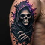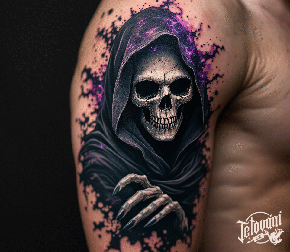 Tetování kostlivec, smrtka na rameni