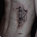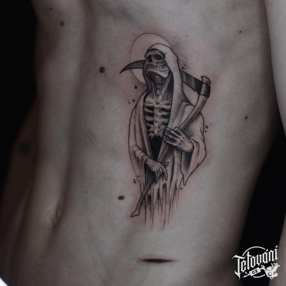Tetování kostlivec, symbol smrti, měsíc na žebra