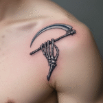 Tetování kostra ruky pod klíční kost