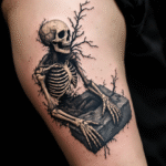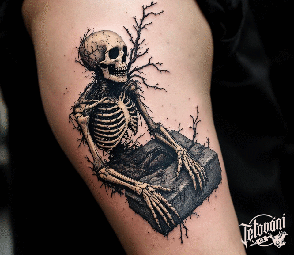 Tetování kostra vylézající z hrobu na bok stehna
