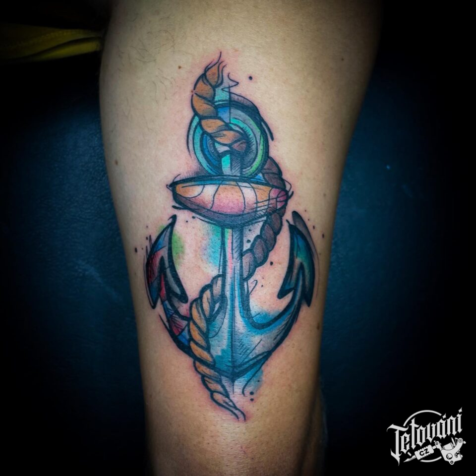 Tetování kotva, symbol na stehno