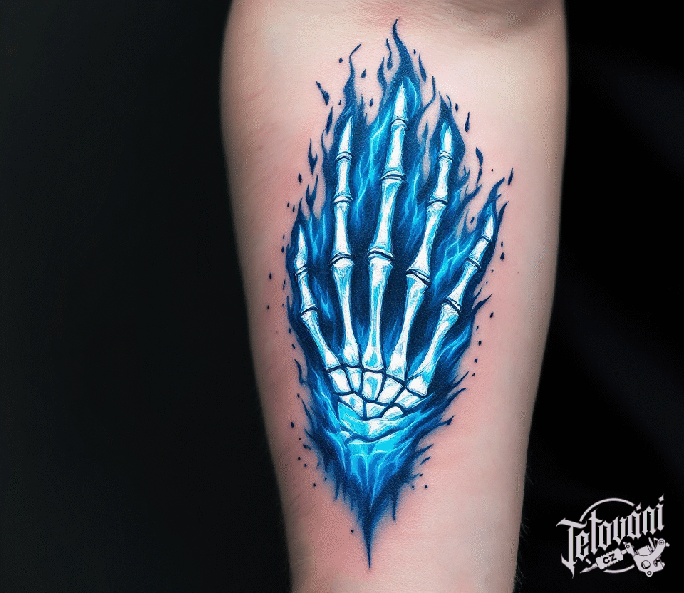 Tetování kouzelná kostra ruky na předloktí