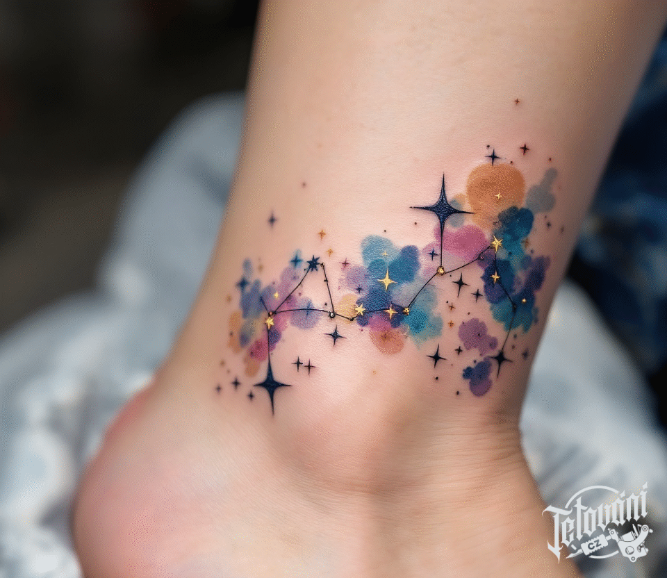 Tetování kozoroh znamení zvěrokruhu, souhvězdí kozoroha na kotníku