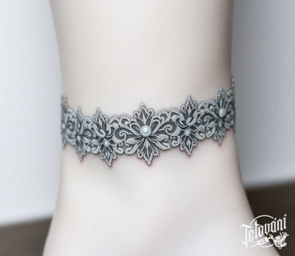 Tetování krajka, náramek na kotník