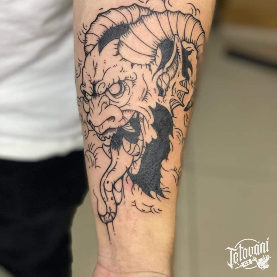 Tetování Krampus nadpřirozená bytost na předloktí