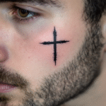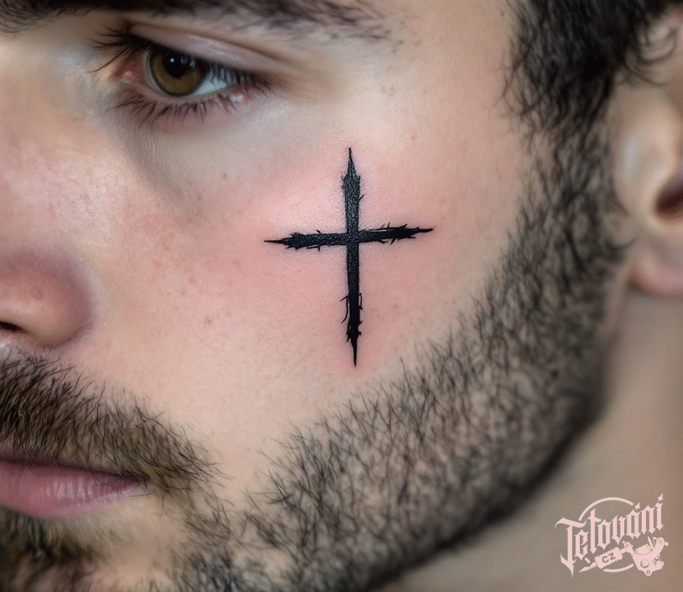 Tetování křesťanský kříž pod oko