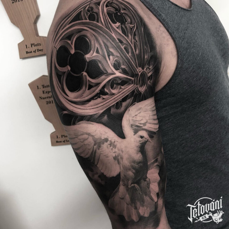 Tetování křesťanství, zvíře, pták, holubice na rameni