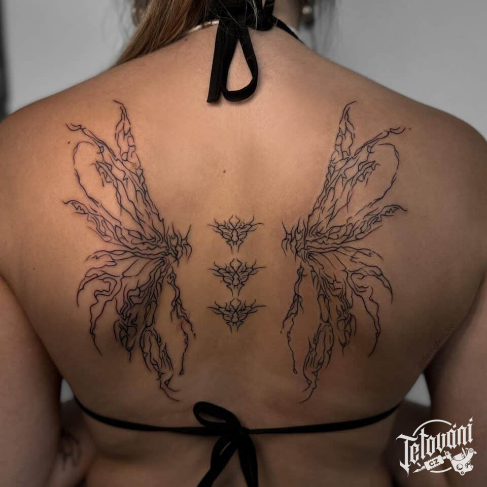 Tetování křídla na zádech