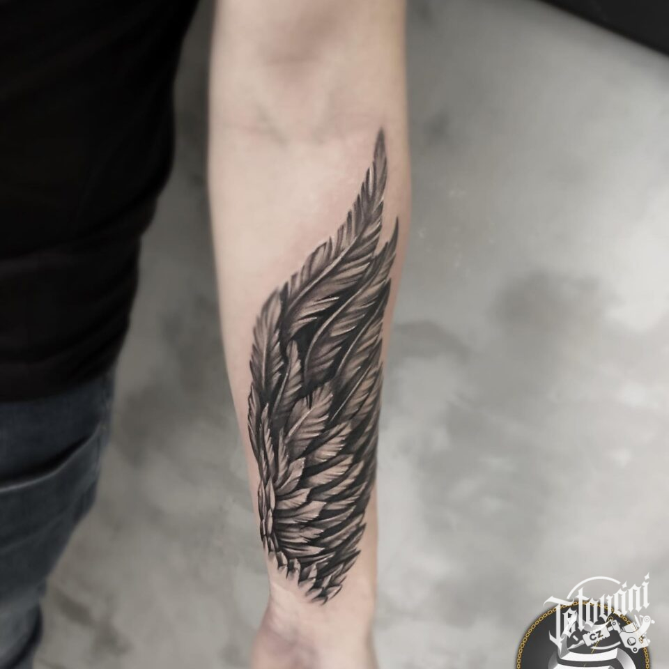 Tetování křídlo na předloktí
