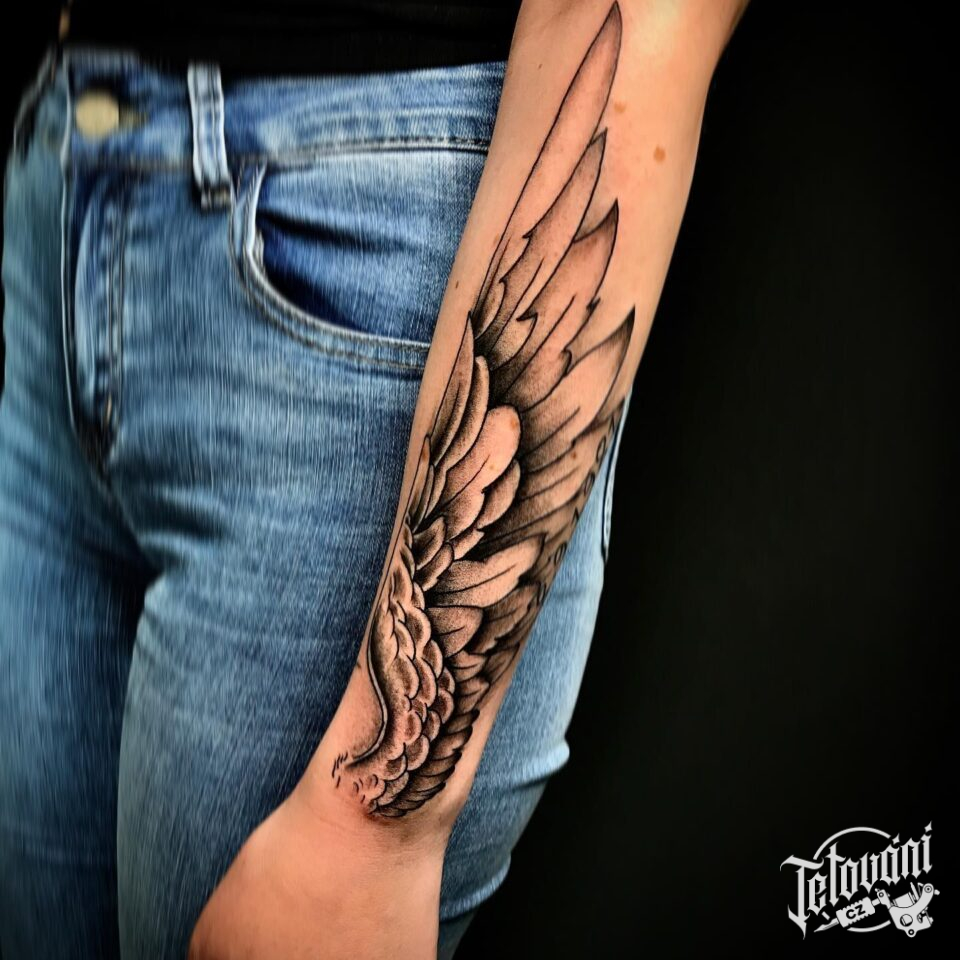 Tetování křídlo na předloktí