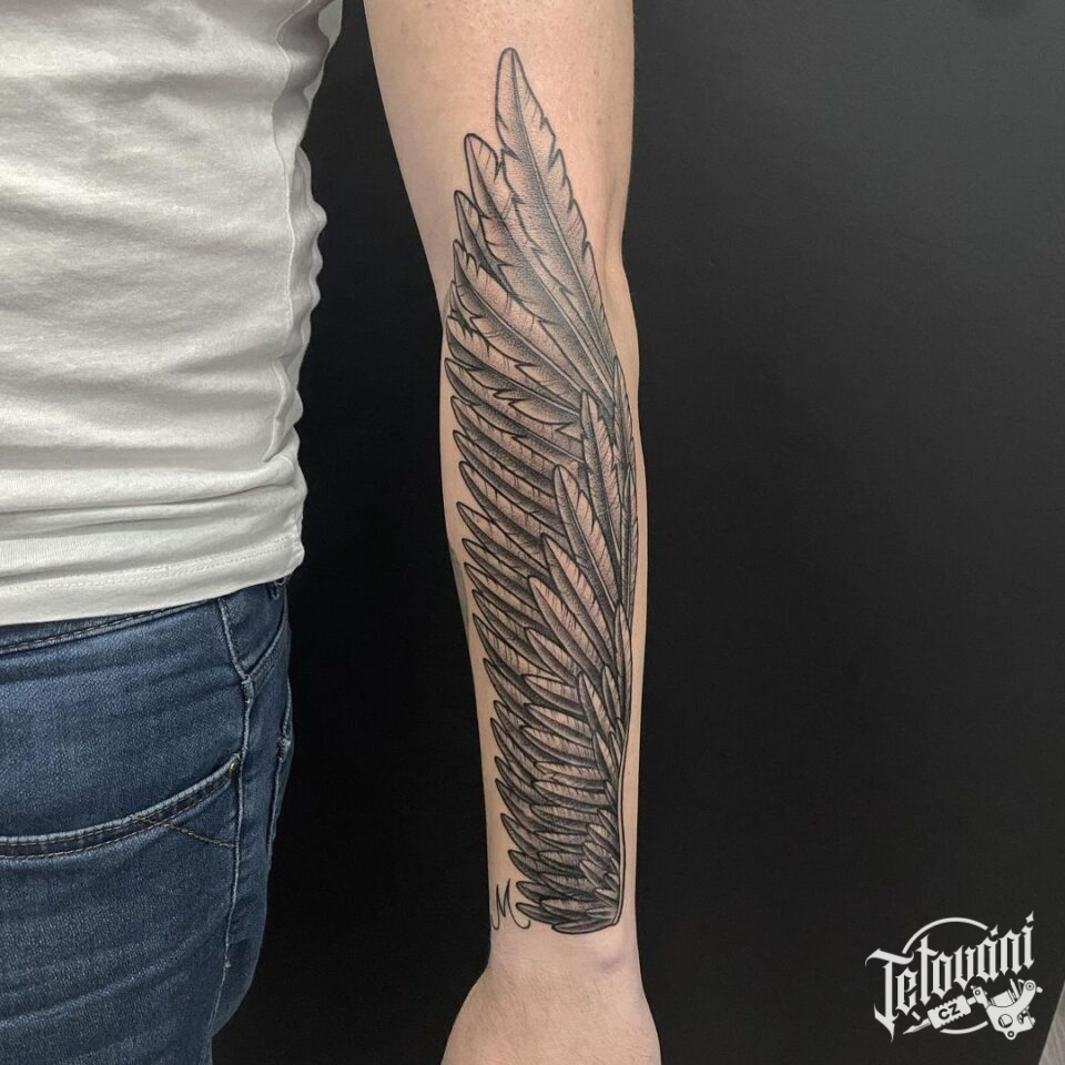 Tetování křídlo na předloktí