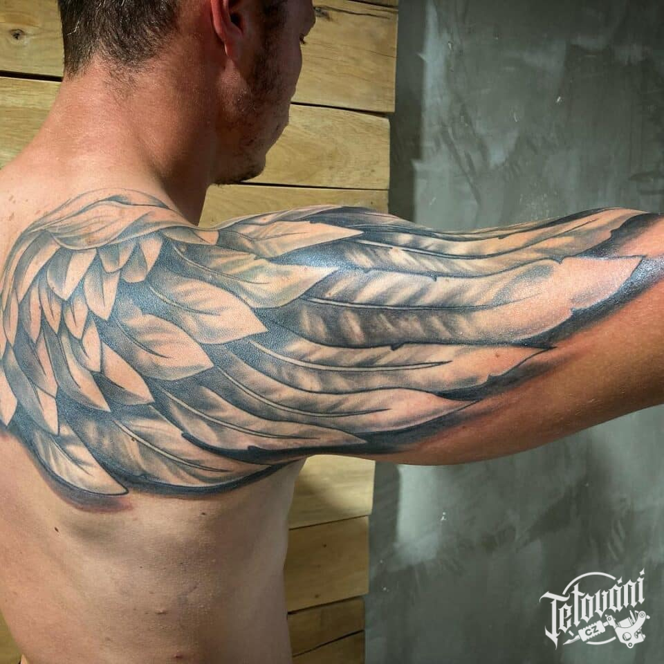 Tetování křídlo na rameni