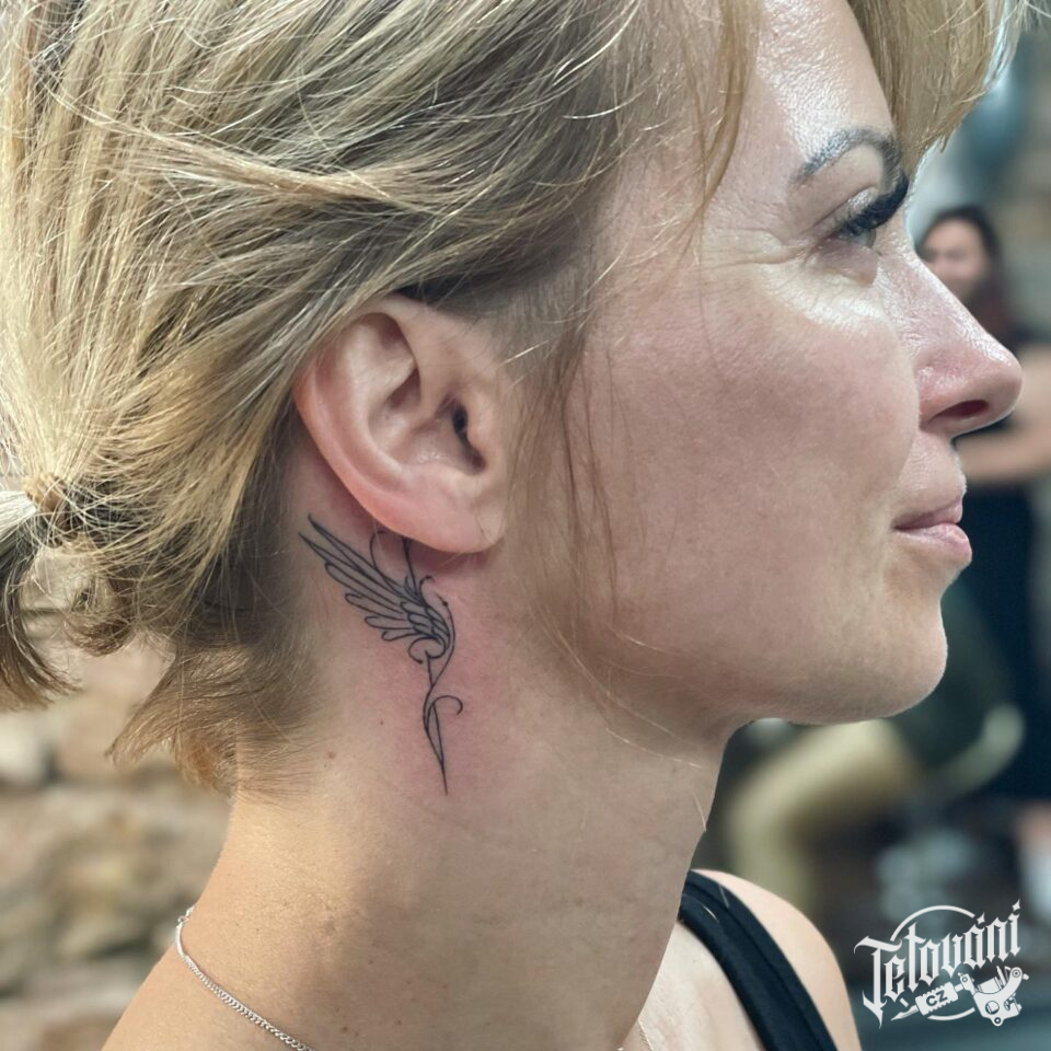 Tetování křídlo za ucho