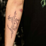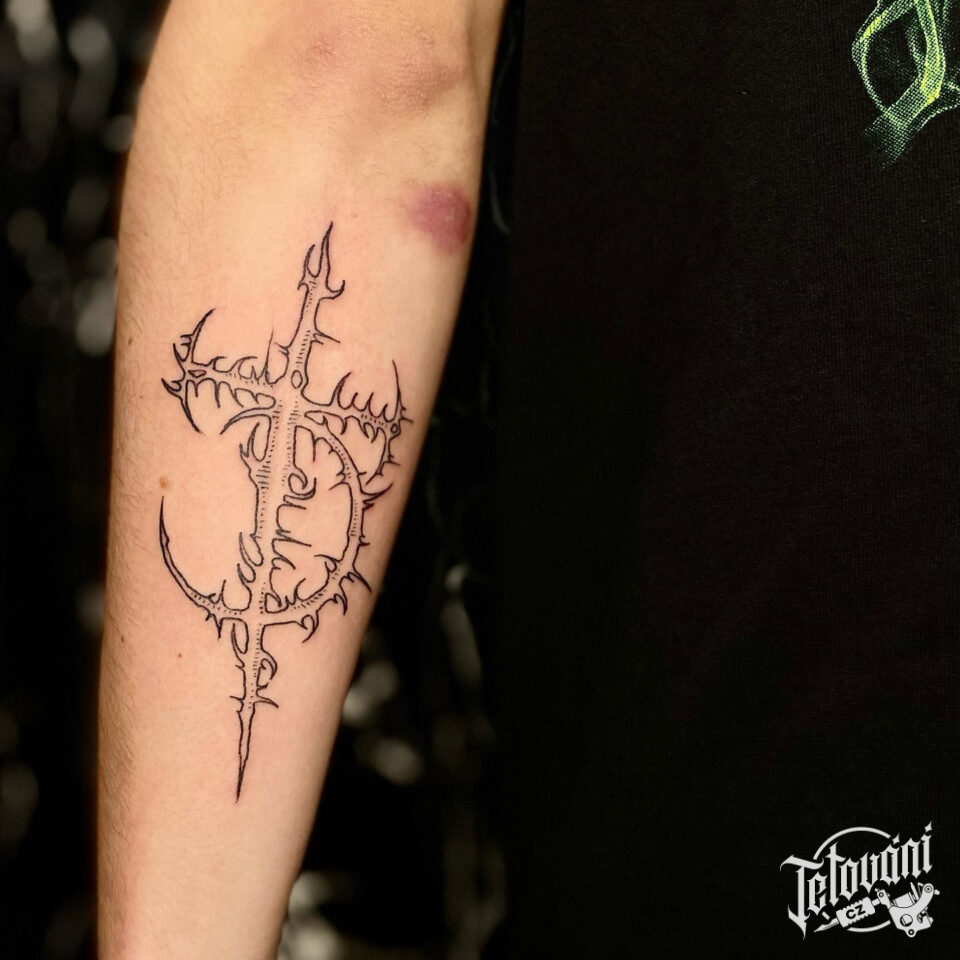 Tetování kříž a měsíc, symbol na předloktí
