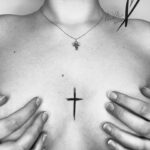 Tetování kříž mezi prsa