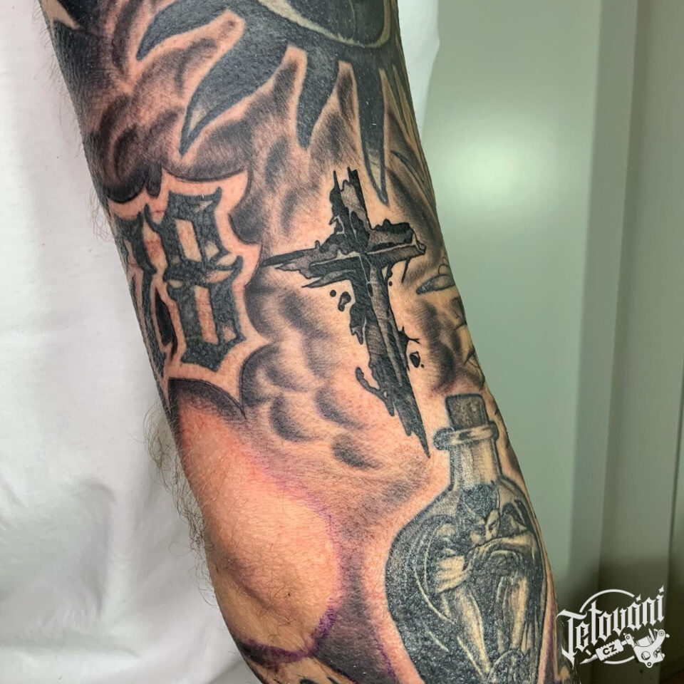 Tetování kříž na loket