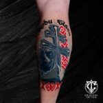 Tetování kříž na lýtku