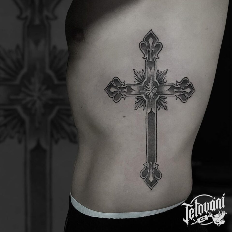 Tetování kříž na žebrech
