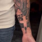 Tetování kříž, ruka s růží na předloktí