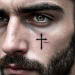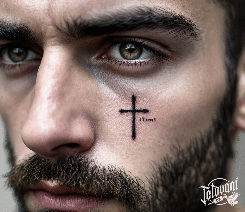 Tetování kříž s nápisem na obličej
