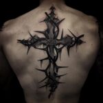 Tetování kříž s ostnatým drátem na páteř