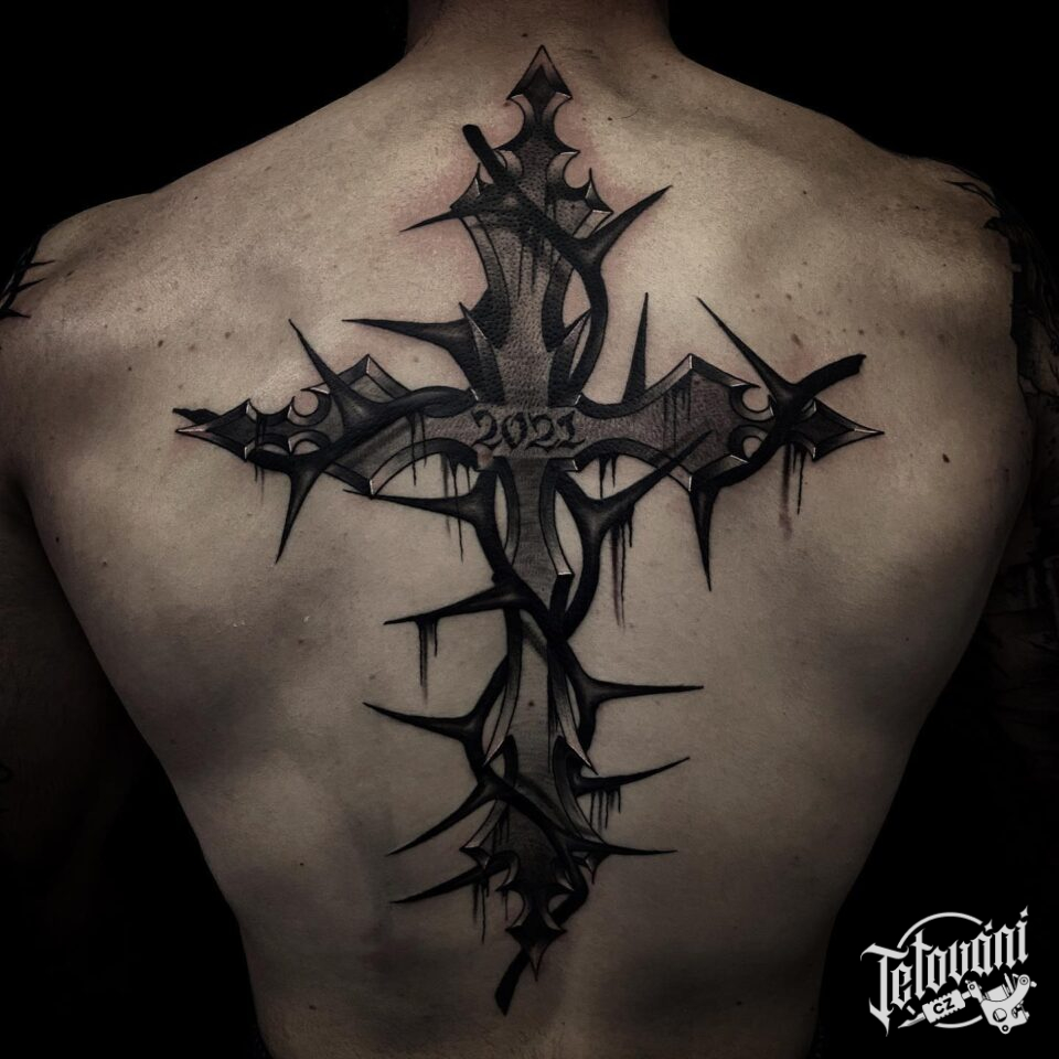 Tetování kříž s ostnat...