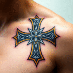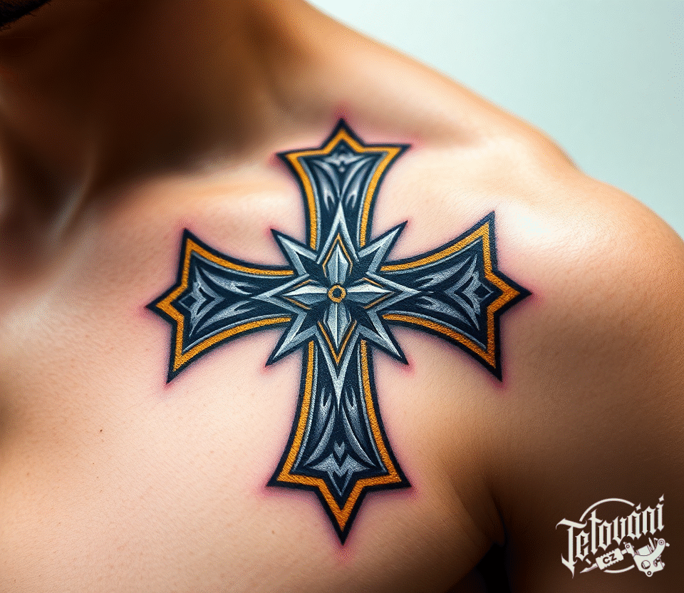 Tetování kříž, templářský kříž na klíční kost