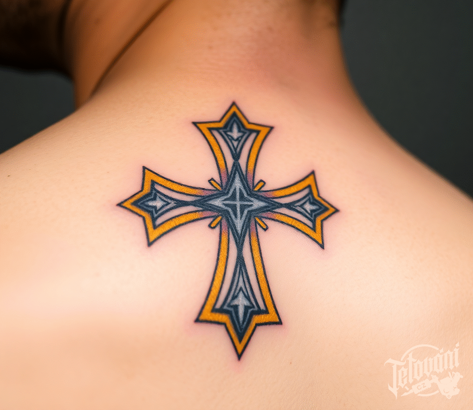 Tetování kříž, templářský kříž na záda