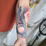 Tetování kruh, pírka, peří na předloktí