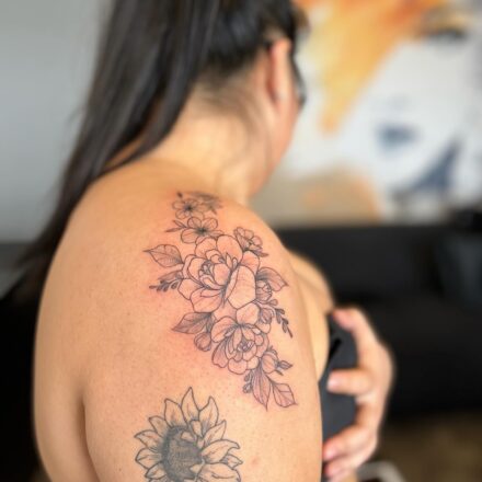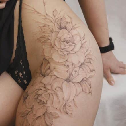 Tetování květ na lýtko