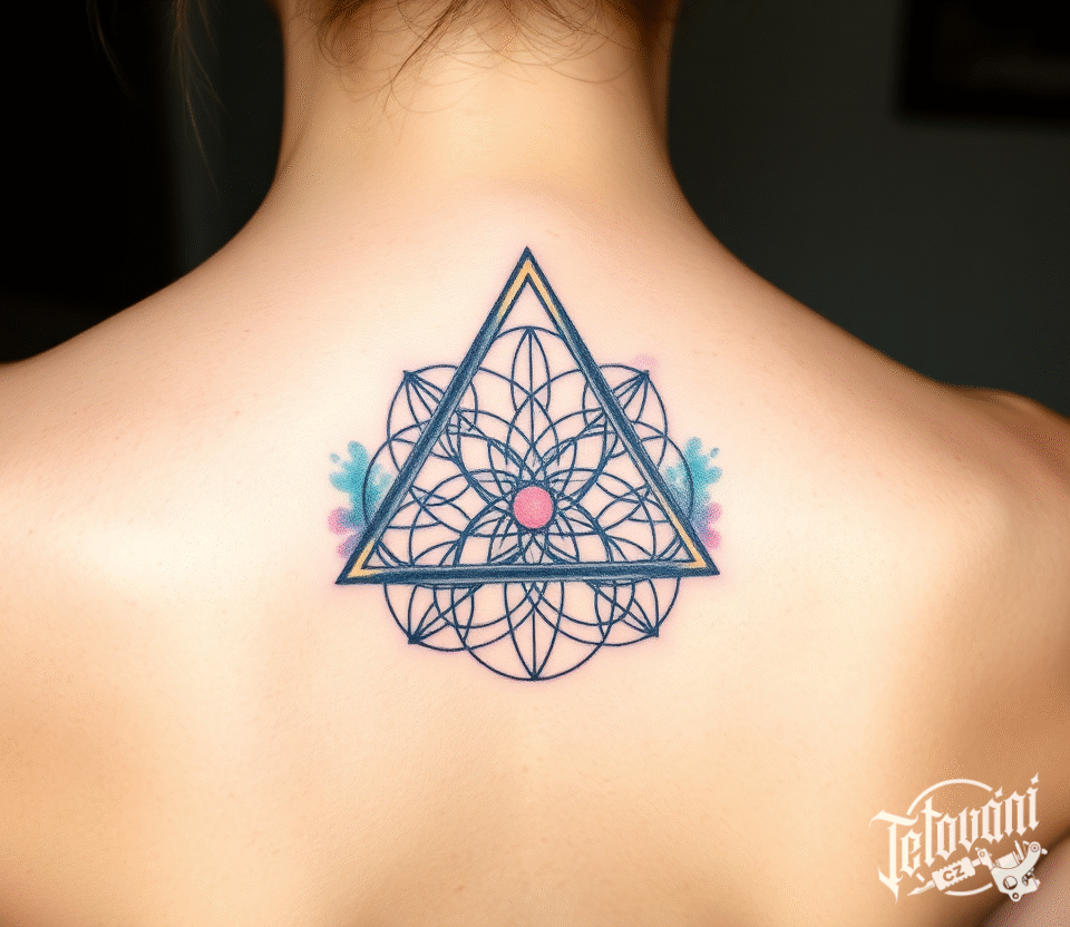 Tetování květ života, ornament, tvar na páteř