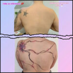 Tetování květina a čáry na zádech