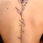Tetování květina a nápis na páteři