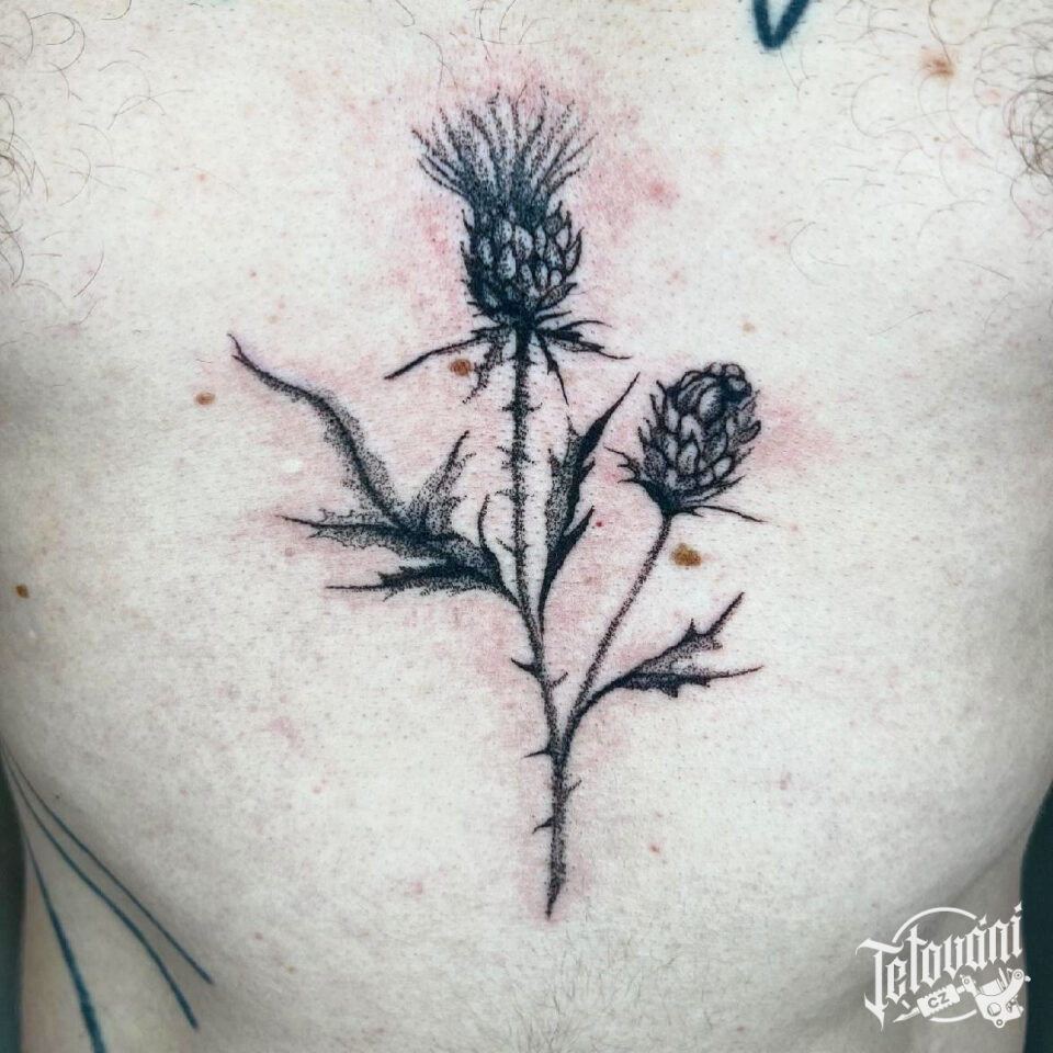 Tetování květina bodlák na hrudník