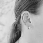 Tetování květina, čáry, srdíčko na uchu
