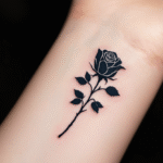 Tetování květina, černá malá růže na zápěstí