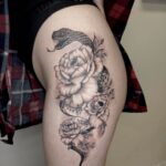 Tetování květina, had na stehno