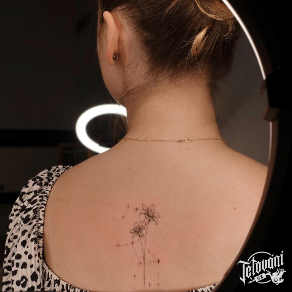 Tetování květiny, hvězdy na zádech