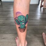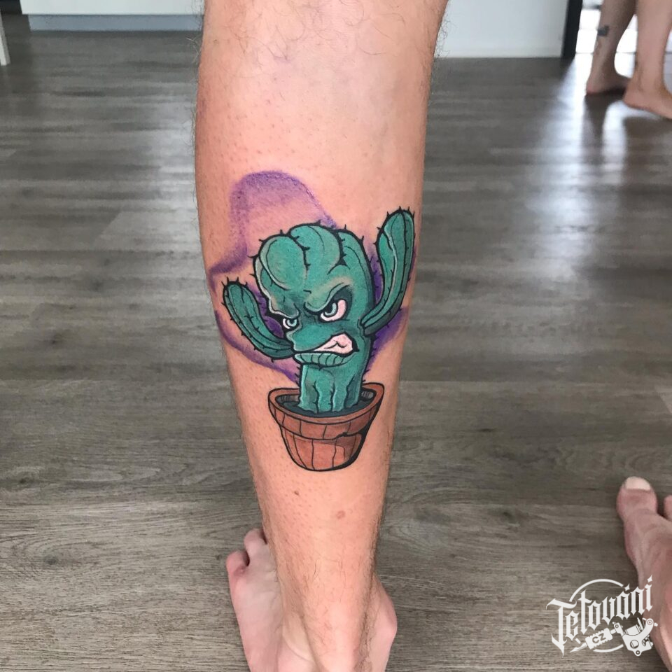 Tetování květina, kaktus na lýtku