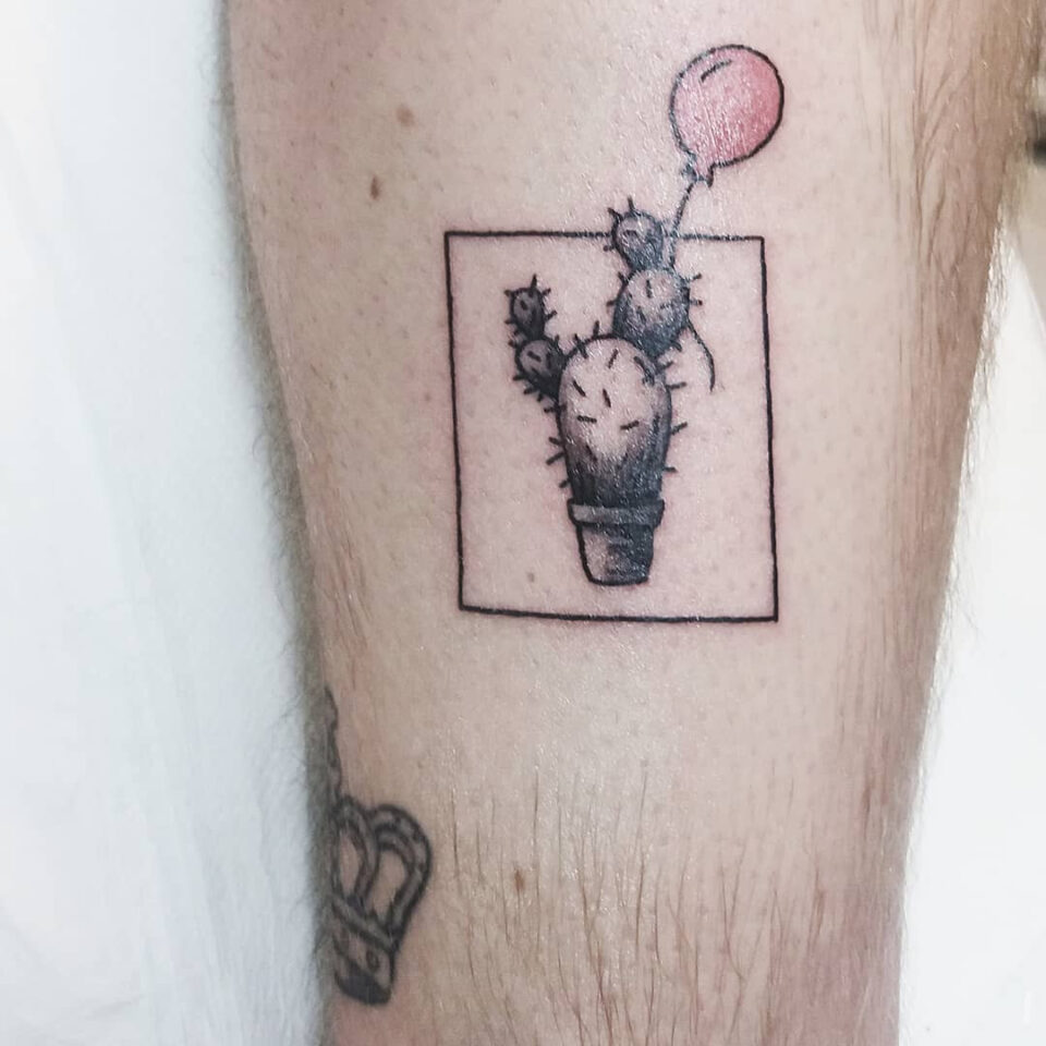 Tetování květina, kaktus na lýtku