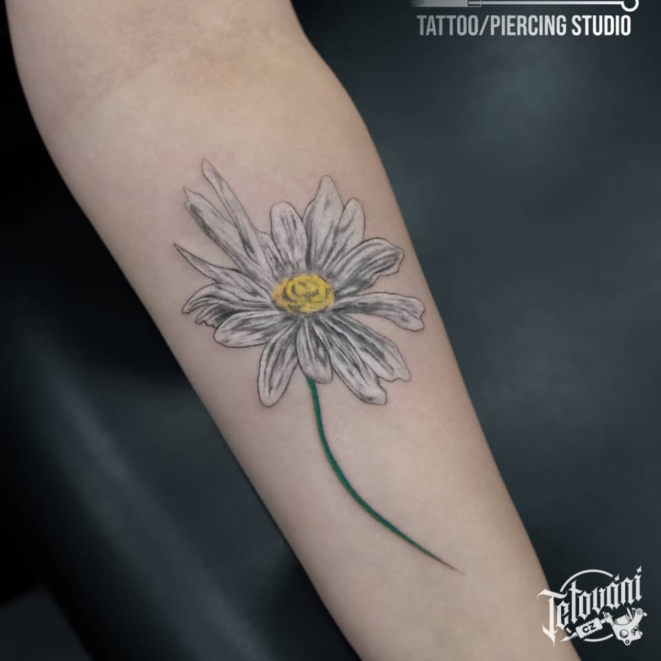 Tetování květina, kopretina na předloktí