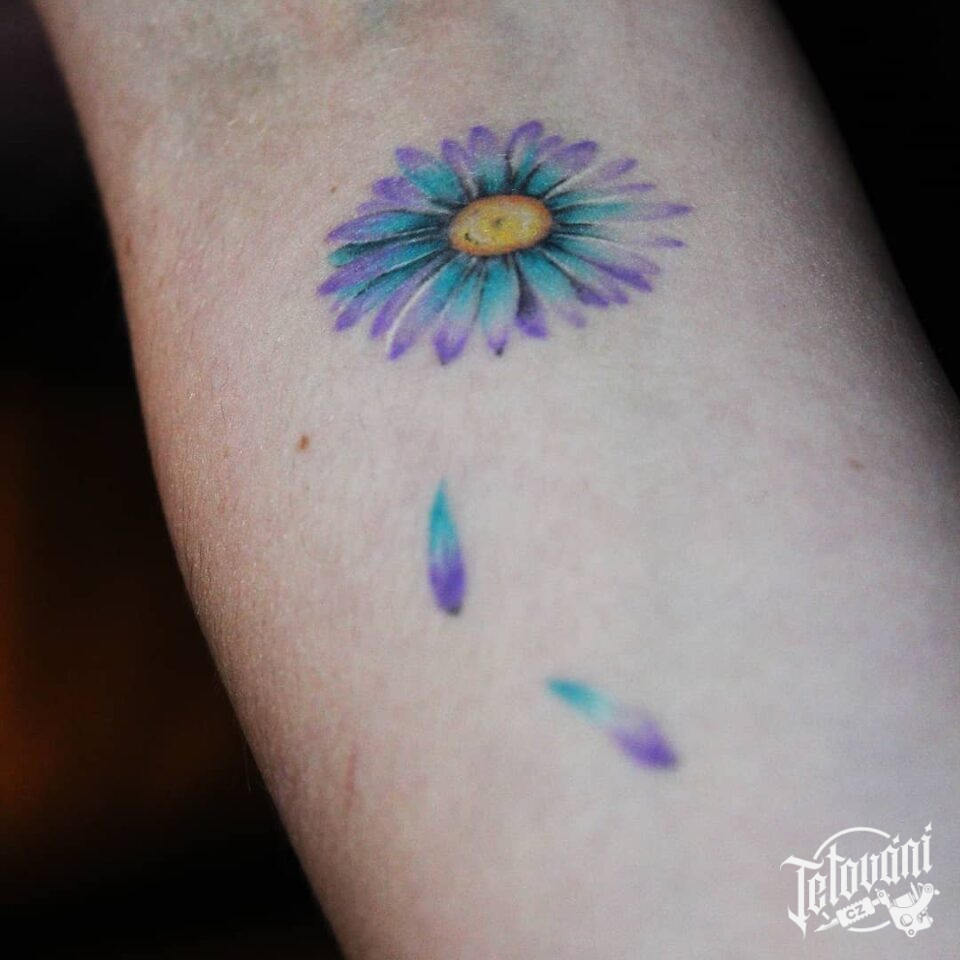 Tetování květina, kopretina na předloktí