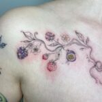 Tetování květina, lesní plody pod klíční kostí