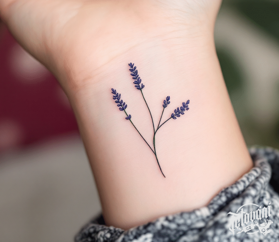 Tetování květina levandule na předloktí