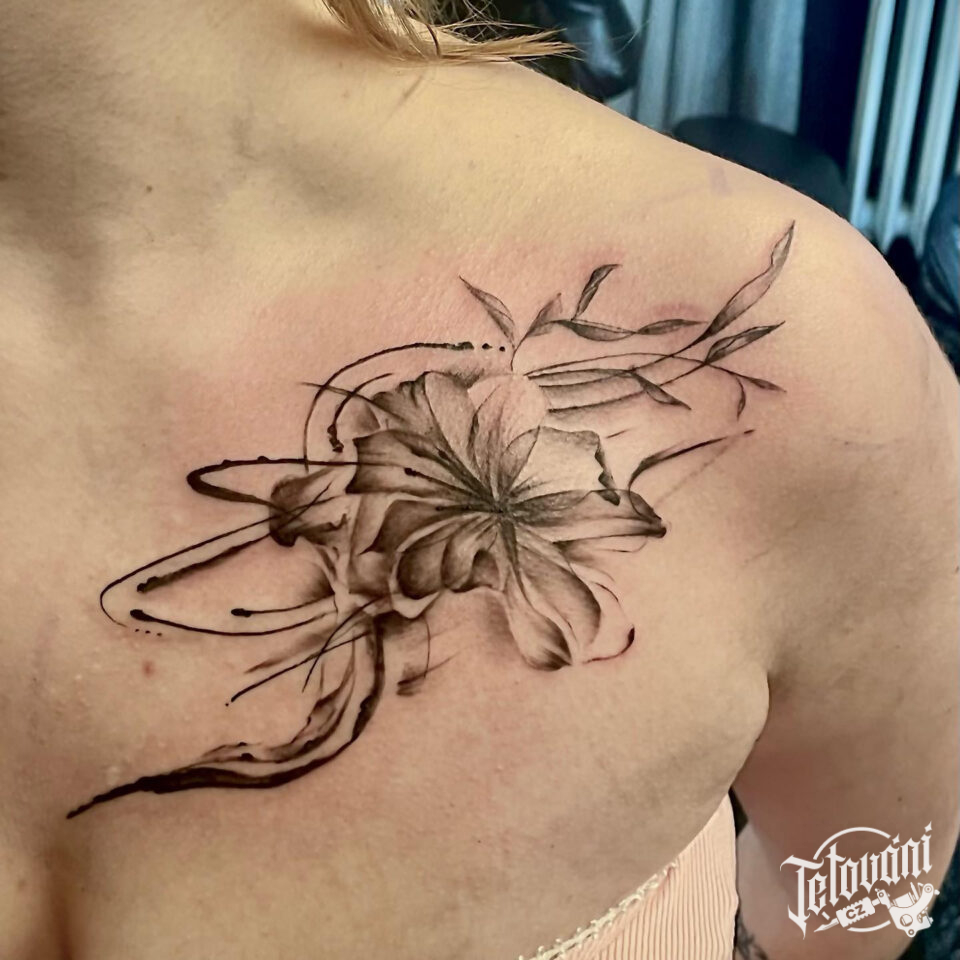 Tetování květina, lilie na hrudi