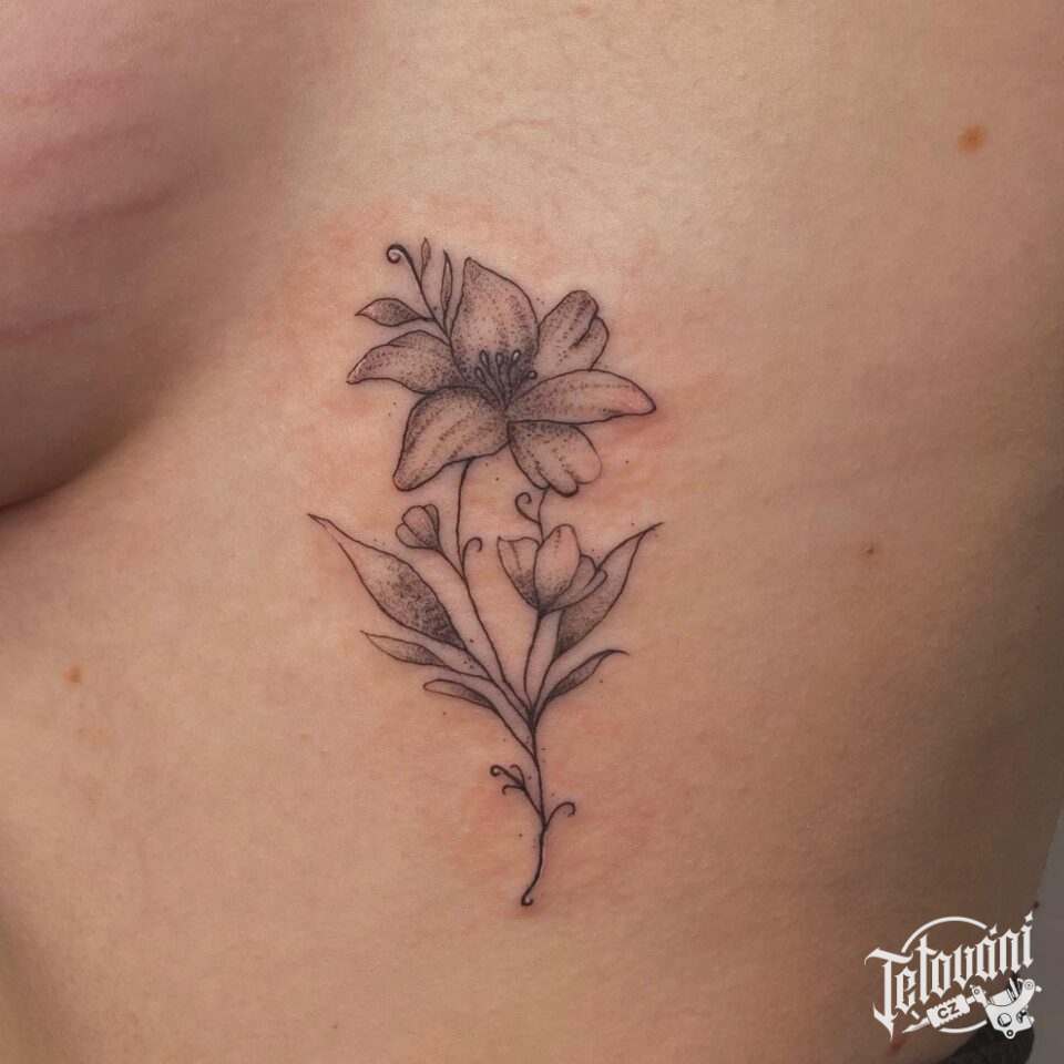 Tetování květina, lilie na žebra