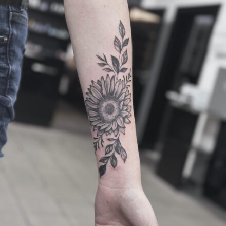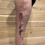 Tetování květina, listy monstery na boku stehna