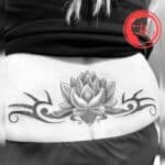 Tetování květina lotos s ornamenty na zádech